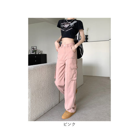 カーゴパンツ レディース ワイドパンツ【ピンク】【Lサイズ】