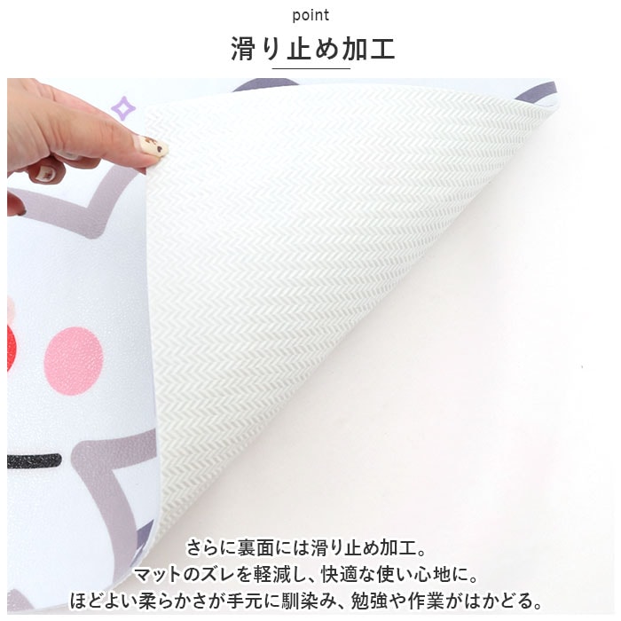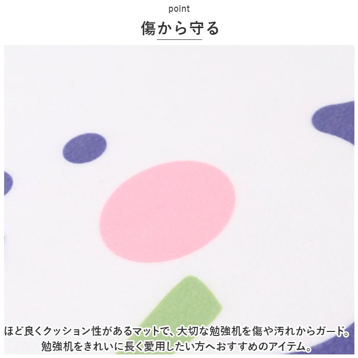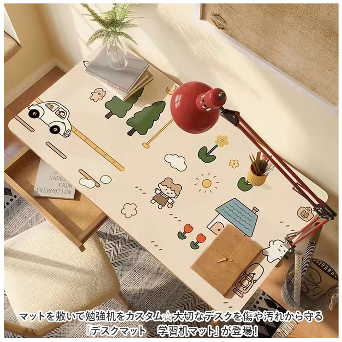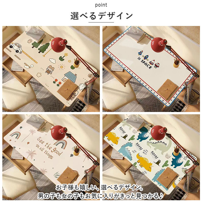 | 商品説明 | マットを敷いて勉強机をカスタム☆大切なデスクを傷や汚れから守る「デスクマット 学習机マット」が登場!【勉強机をカスタム】勉強机を自分のお気に入りの空間にカスタム☆楽しく机に向かって学んでほしいから、可愛いデザインをご用意。勉強のきっかけ作りにも◎【傷から守る】ほど良くクッション性があるマットで、大切な勉強机を傷や汚れからガード。勉強机をきれいに長く愛用したい方へおすすめのアイテム。【撥水加工】丈夫なPVC素材を採用。表面には撥水加工を施し、汚れに強い仕様に。汚れたら水拭きOK。キレイに保てるのも嬉しいポイント。【滑り止め加工】さらに裏面には滑り止め加工。マットのズレを軽減し、快適な使い心地に。ほどよい柔らかさが手元に馴染み、勉強や作業がはかどる。【使えるシーンいろいろ】勉強机に敷くのはもちろん、リビングでの作業やテレワークにもオススメ。撥水加工済みなので、お子様の食事マットや、離乳食の食べこぼし対策にも◎幅広いシーンで活躍。【選べるデザイン】お子様も嬉しい、選べるデザイン。男の子も女の子もお気に入りがきっと見つかる♪ |