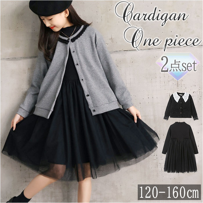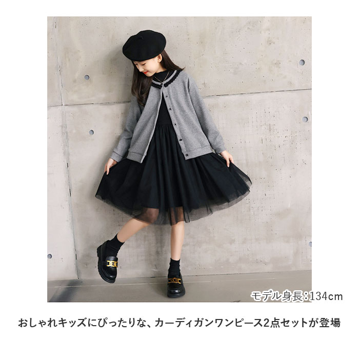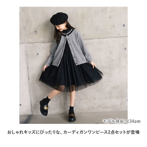 カーディガンワンピース2点セット lydrebl1【ブラック】【140cm】