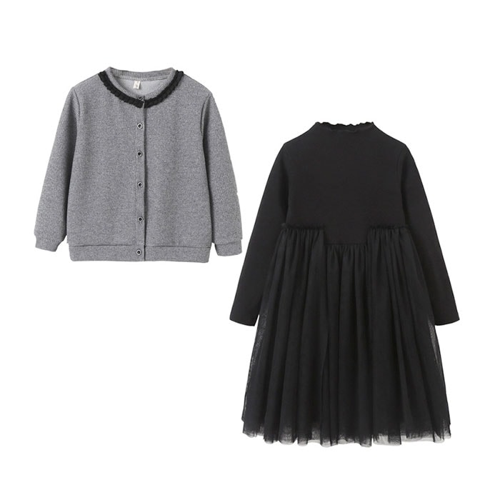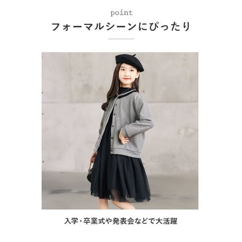 | 商品説明 | おしゃれキッズにぴったりな、カーディガンワンピース2点セットが登場。【フォーマルシーンにぴったり】入学・卒業式や発表会などで大活躍。【単体使いもOK】シンプルながらも、さりげない存在感のあるデザイン。お手持ちのアイテムと合わせて、おしゃれにコーディネート♪《カーディガン》【落ち着きのあるデザイン】グレーカラーに、ブラックカラーのお襟元デザインがアクセント。【キラッと光るフロントボタン】ラメ感のある縁デザインがポイント。ボタンを開けても閉じてもOK。【リブ袖タイプ】腕まくりもラクチン。《ワンピース》【大人な雰囲気漂うデザイン】異素材を組み合わせたオールブラックカラー。【ふんわりチュール】・2枚重ねのチュールに、切替部分のサイドからもう1枚プラス♪【あたたかい起毛素材】お肌に当たる部分はふわっと柔らかな起毛素材。【ネックレスなどのアクセサリーも映える♪】襟元はやや高さのあるモックネックタイプ。【着脱カンタン】ホックやファスナーがないので、頭からすっぽり被るだけ! |
