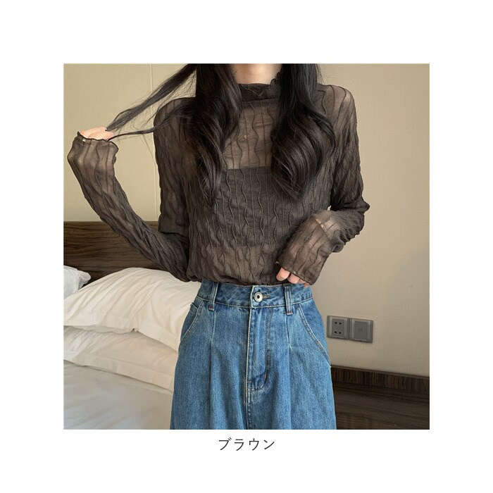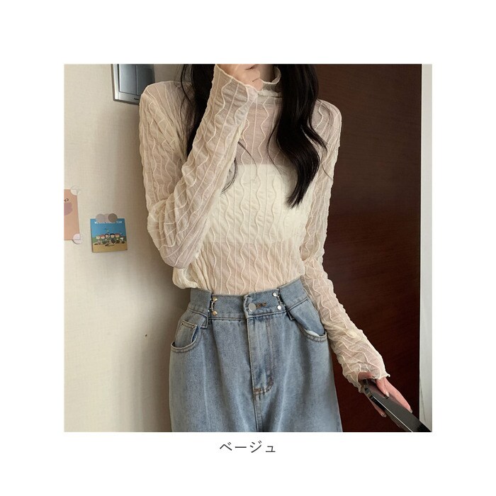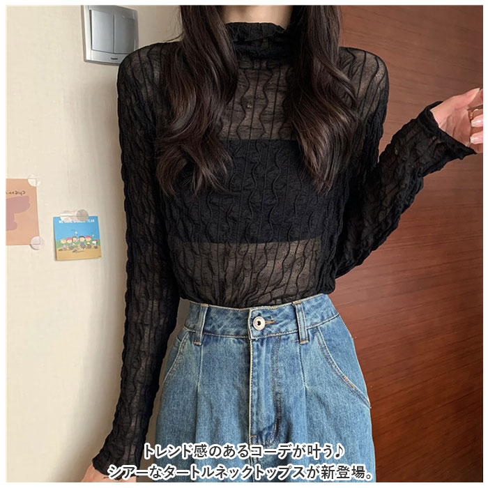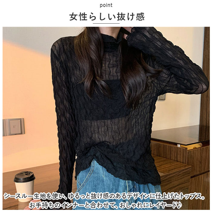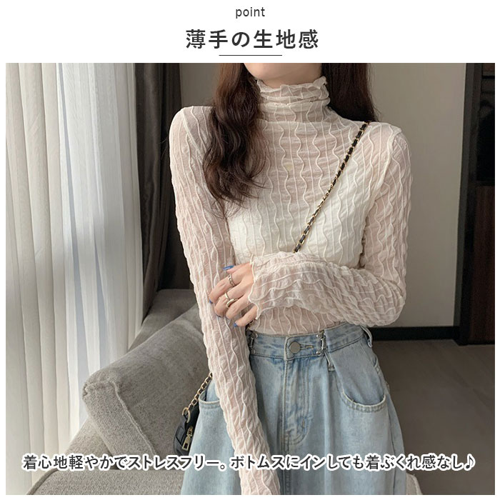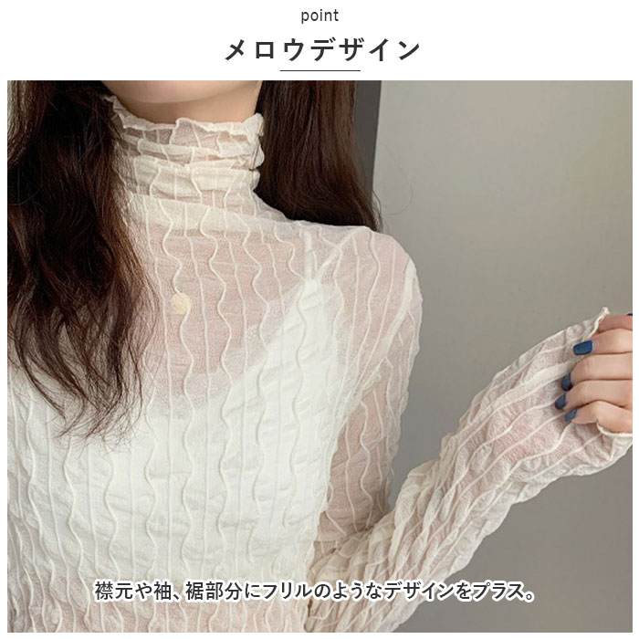 | 商品説明 | トレンド感のあるコーデが叶う♪シアーなタートルネックトップスが新登場。【女性らしい抜け感】シースルー生地を使い、ゆるっと抜け感のあるデザインに仕上げたトップス。お手持ちのインナーと合わせて、おしゃれにレイヤード♪【メロウデザイン】襟元や袖、裾部分にフリルのようなデザインをプラス。【薄手の生地感】着心地軽やかでストレスフリー。ボトムスにインしても着ぶくれ感なし♪【タートルネックタイプ】首元まで覆うタートルネック仕様。クシュクシュっと高さ調節も自在。【すっきりみえるセットインスリーブ】体のラインに沿うように袖が付いた、セットインスリーブデザイン。肩のラインをキレイ魅せ♪【スタンダードカラー】どんなボトムスにも合わせやすいカラーをラインナップ。 |