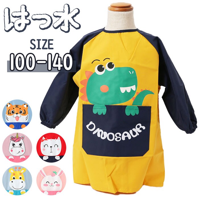 アニマルスモック lykidaprn2【イエロー×キョウリュウ】【100cm】