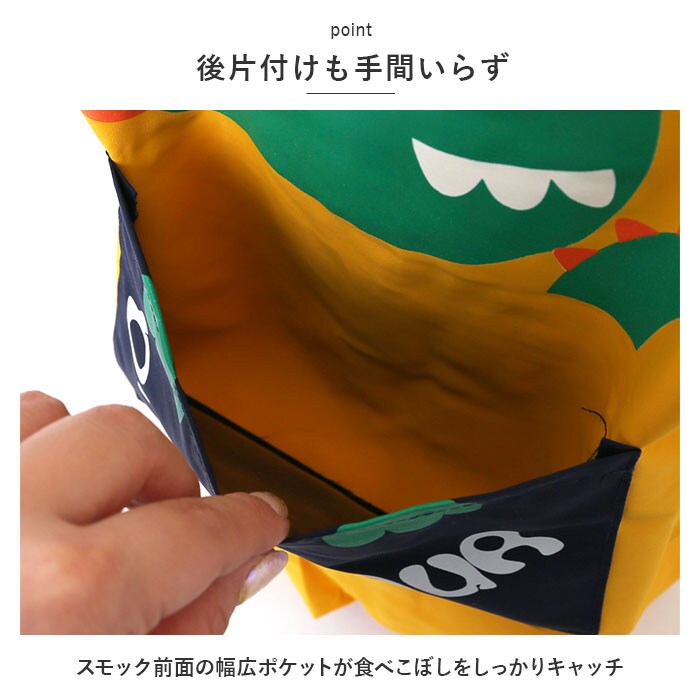 | 商品説明 | 工作やお絵描き、食べこぼしを気にせずに、のびのび楽しく!【洋服の汚れを気にせず楽しめる♪】パンツやスカートの太もも部分までカバーするデザインを採用。洋服の汚れを気にしないで、のびのび楽しめる♪【お絵描きや工作の時にも活躍!!】キュッと絞れるゴム入りの袖口で、ランチタイムはもちろん、お絵描きや工作の時にも活躍!!【後片付けも手間いらず】スモック前面の幅広ポケットが食べこぼしをしっかりキャッチするから、後片付けも手間いらず。【お子さまサイズに調節可能】背面の紐と首元の紐で長さを調節。締め付けすぎず、お子さまサイズに調節可能。【お手入れ簡単】生地の表面は、食べ物の汚れやドリンクの水滴をサッと弾くはっ水加工済みなので、お手入れ簡単、いつでも清潔に使えるのが嬉しいポイント!【豊富なサイズ展開】100サイズ~140サイズまで、お子さまの成長に合わせてチョイスできる豊富なサイズ展開も魅力。 |