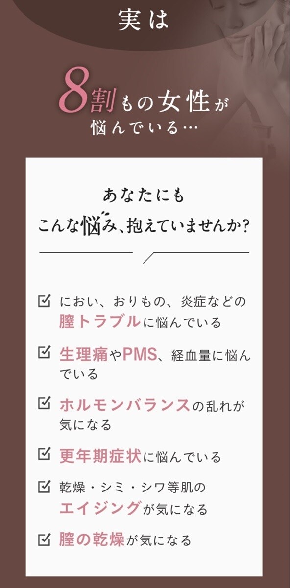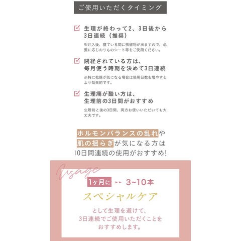 | 商品説明 | 美容と保湿に着目して開発されたフェムケア美容液。再生医療の研究に基づいて開発され、乳酸、NMN、プロポリスエキスなど独自の成分を配合し、デリケートな部分にうるおいを与え、健やかに保ちます。また、デリケートな部分のケアとして、うるおいをサポートする成分が含まれており、すこやかで美しい肌を目指す方におすすめです。 |