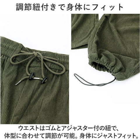 | 商品説明 | コーデュロイでラフな着こなしが今っぽくキマる。「メンズ カーゴパンツ」が登場。【今っぽく仕上がるコーデュロイ素材】トレンドのコーデュロイ素材を使用したパンツ。着ぶくれしにくい薄めの生地で暖かく快適。【こだわりの絶妙ダボっとシルエット】ダボっとした作りに、裾をキュっと絞りシルエットにメリハリをIN。絶妙なこなれ感を演出。【デザイン&機能的な大きめポケット】カーゴの定番である大きめポケットを搭載。ポケットは全部で4つ。機能的でデザイン性もGOOD◎【ストレスフリーな履き心地】ウエストは幅広のゴム仕様なので、締め付け感が少なくラクチン!1日履いてもストレスフリー。【調節紐付きで身体にフィット】ウエストはゴムとアジャスター付の紐で、体型に合わせて調節が可能。身体にジャストフィット。【ロングシーズン活躍する】コーデュロイ素材で保温性◎薄めの生地なので、季節の変わり目から長いシーズン活躍。【定番カラーで使いやすい】コーデに取り入れやすい、定番カラーのラインナップ。カジュアルスタイルを極めたい方へ☆ |