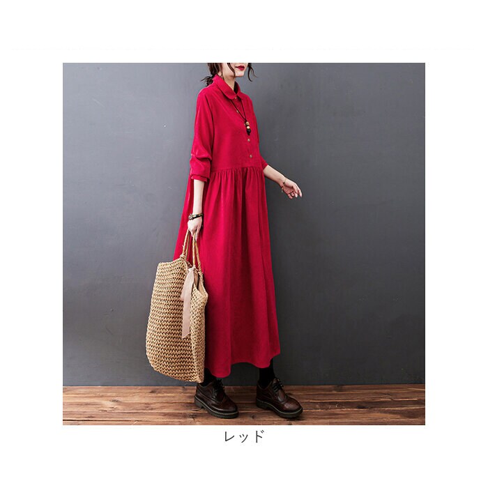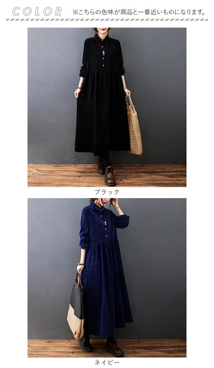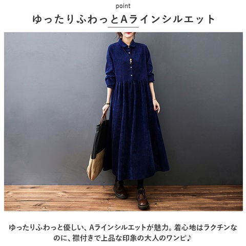 | 商品説明 | ゆったりふわっと体型カバー☆コーデュロイ素材で秋冬のおしゃれ。 ロングワンピースが登場。【ゆったりふわっとAラインシルエット】ゆったりふわっと優しい、Aラインシルエットが魅力。着心地はラクチンなのに、襟付きで上品な印象の大人のワンピ♪【体型カバー◎】身体のラインを拾わない、幅広設計。ロング丈なので、1枚着るだけでコーデが完成。体型を気にせず着られるのも嬉しいポイント。【コーデュロイ素材を使用】ほどよく厚みのあるコーデュロイ素材を使用。コーデュロイは細く繊細な作りなので、高見え感アリで幅広い年齢層の方が楽しめる♪【こだわりの切替デザイン】柔らかくほっこりあたたかな印象のコーデュロイに、軽やかに揺れるプリーツスカートを組み合わせた、こだわりの切替デザイン。【ロングシーズンOK】秋~冬まで着用できる、ロングシーズン対応のアイテム。ゆったりしているので、寒い季節はインナーを着こんでも、羽織りと合わせてもOK。【ウッディなボタン】フロント部分と袖にはウッディなボタンを配置。ナチュラルなアクセントで、単調になりがちなワンピコーデがパッと垢抜け! |