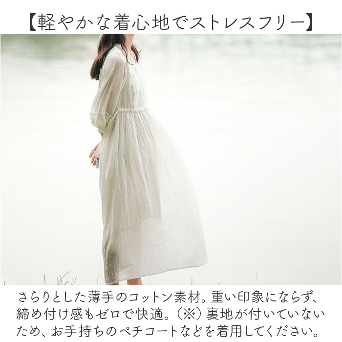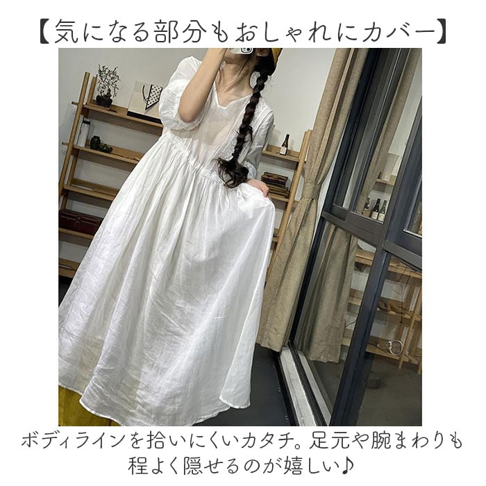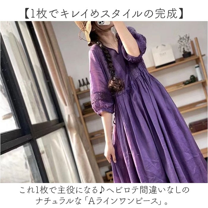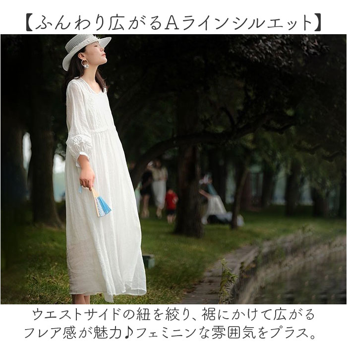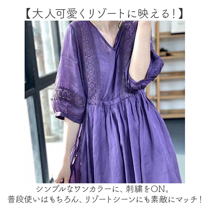 | 商品説明 | 【1枚でキレイめスタイルの完成】これ1枚で主役になる♪ヘビロテ間違いなしのナチュラルな「Aラインワンピース」。【大人可愛くリゾートに映える!】シンプルなワンカラーに、刺繍をON。普段使いはもちろん、リゾートシーンにも素敵にマッチ!【軽やかな着心地でストレスフリー】さらりとした薄手のコットン素材。重い印象にならず、締め付け感もゼロで快適。(※)裏地が付いていないため、お手持ちのペチコートなどを着用してください。【ふんわり広がるAラインシルエット】ウエストサイドの紐を絞り、裾にかけて広がるフレア感が魅力♪フェミニンな雰囲気をプラス。【気になる部分もおしゃれにカバー】ボディラインを拾いにくいカタチ。足元や腕まわりも程よく隠せるのが嬉しい♪【すっきり見せるV字のネックライン】華奢なネックレスと相性抜群、深すぎないVネック。お顔まわりもシャープな印象に。【ボタンなどがなく着脱スムーズ】頭からすっぽり被って、サイド紐を調節するだけ。どこでも着替えがラクチン。【小物を入れておけるポケット】左右には便利なポケットを配置。スマホや薄手のハンカチなどをIN。【お気に入りを選べるカラー】イメージに合わせてチョイスできる、ベーシックや差し色をラインナップ! |