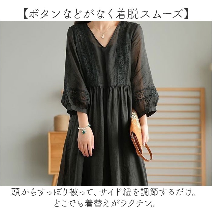 ワンピース Aラインワンピース きれいめ【ブラック】【Lサイズ】