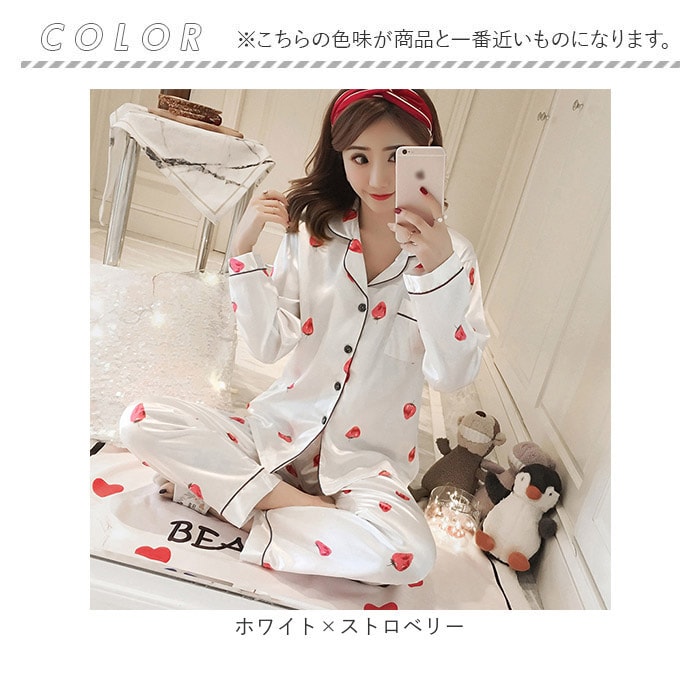 パジャマ レディース lypa01【ホワイト×ストロベリー】【Mサイズ】