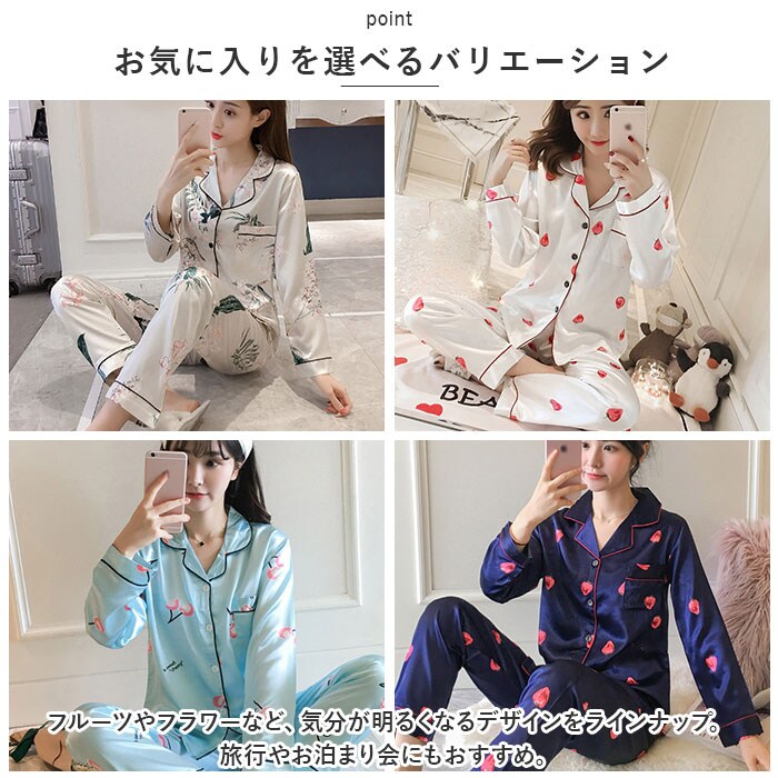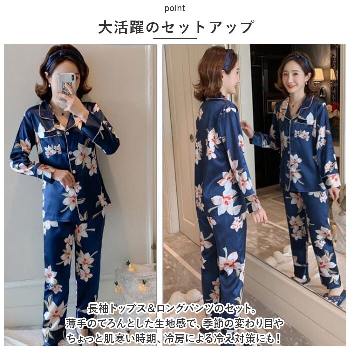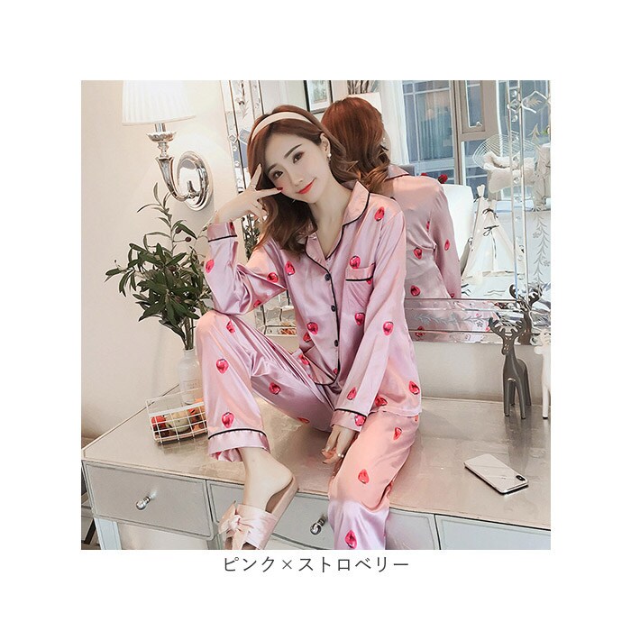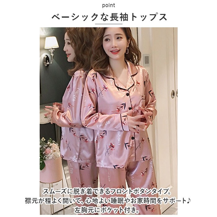 | 商品説明 | おうちの中でも可愛くいたい女性にぴったり!快適に過ごせるパジャマが新登場。【大活躍のセットアップ】長袖トップス&ロングパンツのセット。薄手のてろんとした生地感で、季節の変わり目やちょっと肌寒い時期、冷房による冷え対策にも!【ベーシックな長袖トップス】スムーズに脱ぎ着できるフロントボタンタイプ。襟元が程よく開いて、心地よい睡眠やお家時間をサポート♪左胸元にポケット付き。【ストレスなく履けるロングパンツ】締めつけ感のないウエストゴム仕様で、ストレスフリー◎着替えもラクチン。【お気に入りを選べるバリエーション】フルーツやフラワーなど、気分が明るくなるデザインをラインナップ。旅行やお泊まり会にもおすすめ。 |