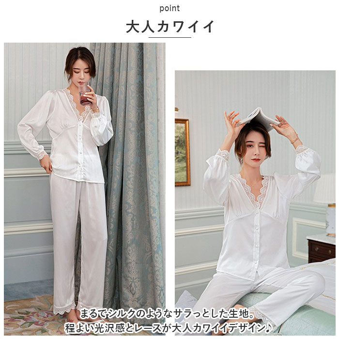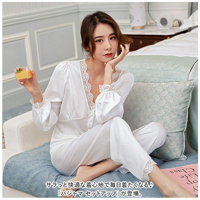 パジャマ セットアップ レディース lypa197【ホワイト】【Mサイズ】