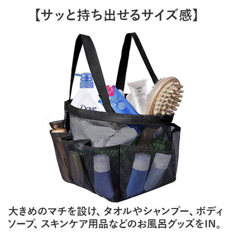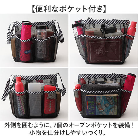 | 商品説明 | 【濡れても安心!】スパや温泉、ビーチなどで大活躍のメッシュバッグが登場。【通性の良いメッシュ素材】バッグ全体に編み目を施したメッシュ仕様。通気性に優れ、乾きが早い!汚れてもお手入れラクラク。【オープン開口】開口部はガバッと開いて荷物を取り出しやすい、オープンタイプ。【サッと持ち出せるサイズ感】大きめのマチを設け、タオルやシャンプー、ボディソープ、スキンケア用品などのお風呂グッズをIN。【便利なポケット付き】外側を囲むように、7個のオープンポケットを装備!小物を仕分けしやすいつくり。【シンプルなデザイン】家族みんなで使えるユニセックスデザイン。お気に入りがきっと見つかる♪【ポケット仕様】外側:オープンポケット×7、キーフック×1 |