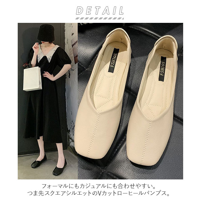 | 商品説明 | フォーマルにもカジュアルにも合わせやすい。つま先スクエアシルエットのVカットローヒールパンプス。ローヒールでさらにクッション性のある中敷きが内蔵されているので、歩きやすく疲れにくい。ストラップがないから脱ぎ履きがラクラク。ベーシックなカラーなのでコーディネートがしやすい!色違いでも持っていたいアイテム。素材が柔らかいので、履き心地がとても良く、快適♪日常使いはもちろん、ちょっとしたお出かけ用やサブシューズとしてもおすすめ。 |