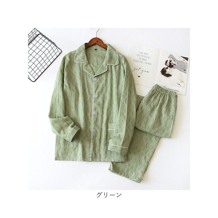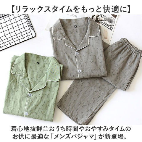 | 商品説明 | 【リラックスタイムをもっと快適に】着心地抜群◎おうち時間やおやすみタイムのお供に最適な「メンズパジャマ」が新登場。【長袖のトップス&パンツセット】肌寒い日や季節の変わり目に。冷房による冷え対策にもぴったりな長袖タイプ。【優しい肌触りでチクチク感ゼロ】サラリと軽いコットン100%のガーゼ素材。お肌に触れても安心&汗ばむ季節もムレにくい!【フロントボタンでサッと着脱】ベーシックデザインのトップス。襟元が程よく開いて、睡眠を妨げない!左右にはポケット付き。【ストレスなく履けるロングパンツ】締めつけ感のないウエストゴム仕様で、着替えもラクチン。【年代問わず着こなしやすいデザイン】落ち着きのあるカラーに、プリント柄をON。洗い替え用に色違い揃えもおすすめ。 |