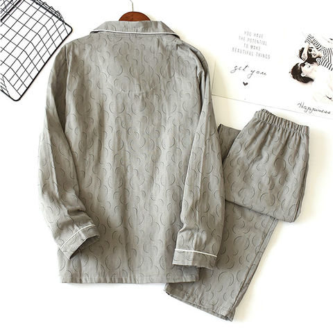 パジャマ メンズ 長袖 綿100% 前開き【グレー】【XLサイズ】