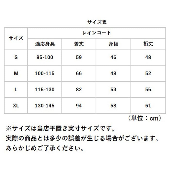 | 商品説明 | ポップなイラストがとってもキュート♪雨の日のお出かけや通学通園に便利なキッズ用レインコートが発売!【ランドセル対応可能】コート背中部分には、ランドセルやリュックを背負ったまま着用できる背マチ付き。【着脱簡単】小さなお子様でも脱ぎ着がしやすい、スナップボタン式。【ピカッと光るリフレクター付き】背中やフード部分にピカッと光るリフレクター素材が付いているので、すれ違う車から認識されやすくなり、薄暗い雨の日でもママパパ安心♪【透明窓付き】フードのツバは透明窓が仕様で、視界を遮る心配なし!【収納袋付き】持ち運びに便利な収納袋付き。【豊富なサイズ展開】Sサイズから2XLサイズまで、ピッタリサイズがチョイス可能♪ |
