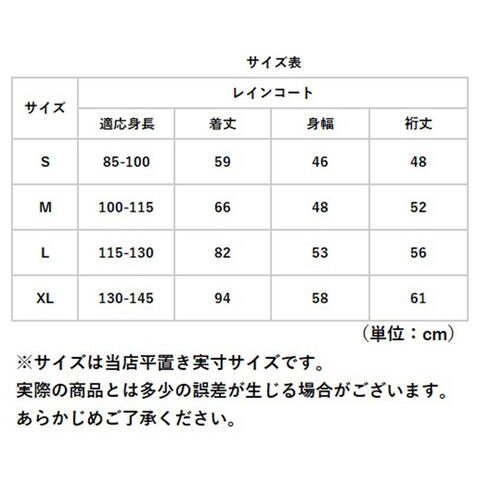| サイズ | [キッズ] 【レインコート】 ・Sサイズ ・Mサイズ ・Lサイズ ・XLサイズ 【収納袋(共通)】 [縦]約25cm/[横]約20cm/[持ち手]約27cm ※収納袋のサイズは当店計測の実寸サイズです。レインコートのサイズについて詳細は、商品画像の中にあるサイズ表をご覧くださいませ。 |