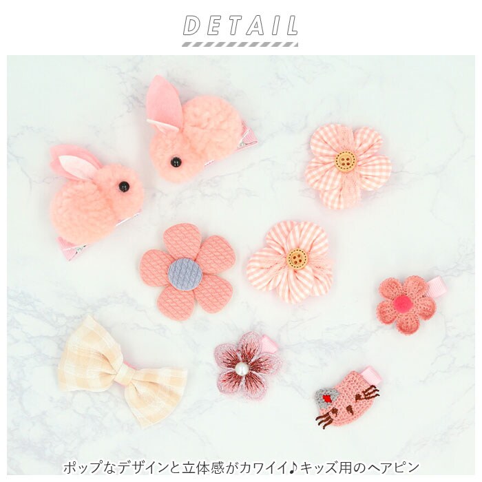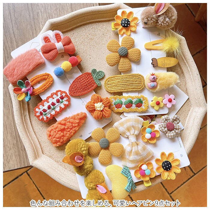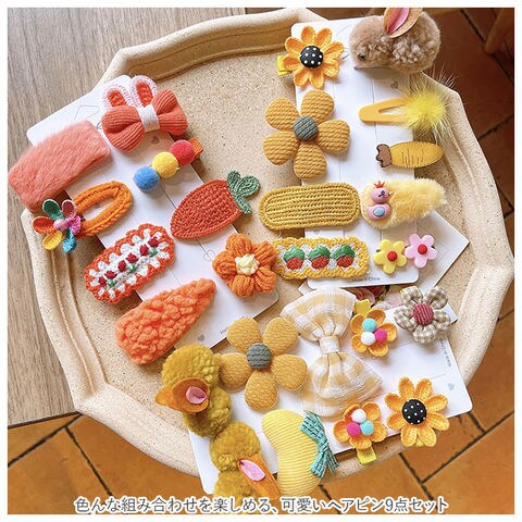 | 商品説明 | ポップなデザインと立体感がカワイイ♪キッズ用のヘアピン。色んな組み合わせを楽しめる、可愛いヘアピン9点セット。ハンドメイド風の刺繍や、フワモコ素材の小さなぬいぐるみが子供らしさUP!(※ぬいぐるみのヘアピンはタイプによって入っていない場合があります。ご購入前にセット内容をよくご確認下さい。)ピン部分は布で覆われているから安心◎(※一部覆われていないものがあります。ご購入前にセット内容をよくご確認下さい。)普段使いはもちろん、お誕生日などイベントの際のちょっとしたおめかしコーデにもぴったり。その日のコーデに合わせて替えたり、姉妹やお友だちとシェアしてもOK。 |