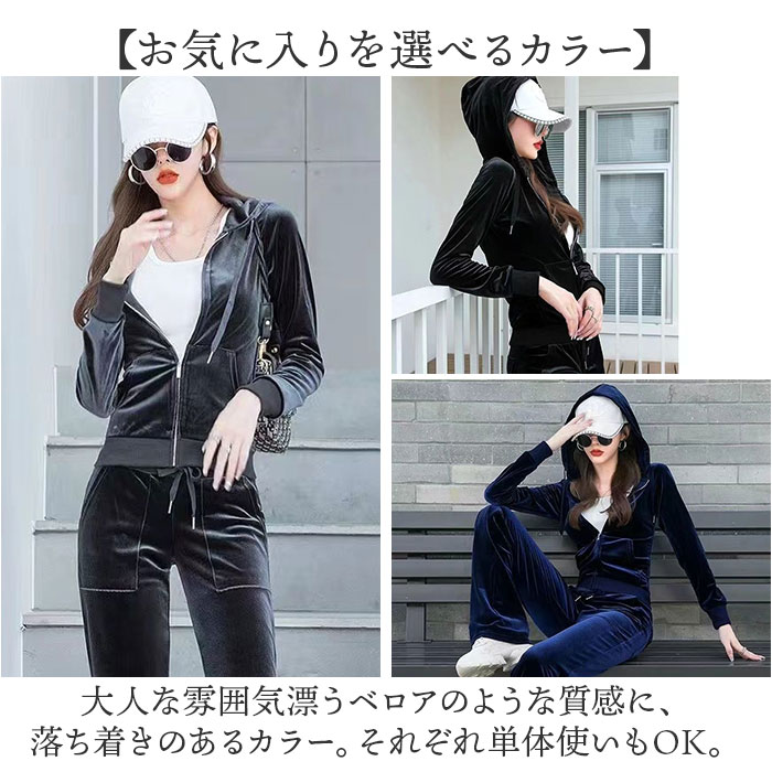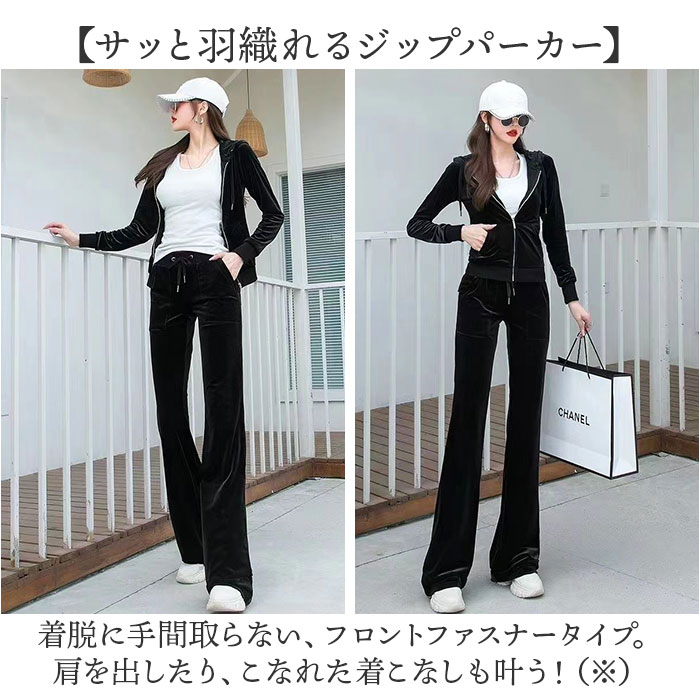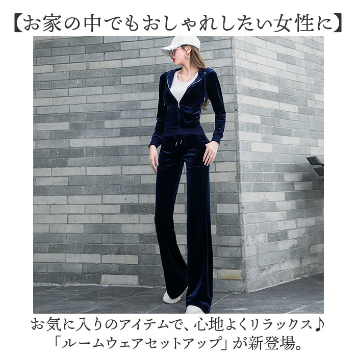 | 商品説明 | 【お家の中でもおしゃれしたい女性に】お気に入りのアイテムで、心地よくリラックス♪「ルームウェアセットアップ」が新登場。【ロングシーズン使えて万能】肌寒い日や季節の変わり目に。冷房による冷え対策にもぴったりな長袖タイプ。【美しいシルエットをキープ】体のラインがキレイに出るフォルム。ラクな着心地ながら、女性らしさもプラス♪【サッと羽織れるジップパーカー】着脱に手間取らない、フロントファスナータイプ。肩を出したり、こなれた着こなしも叶う!(※)左右にポケット付きです。【自分サイズに心地よくフィット】パンツは締め付けのないウエストゴム仕様。紐でフィット感を調節でき、左右にはポケット付き。【お気に入りを選べるカラー】大人な雰囲気漂うベロアのような質感に、落ち着きのあるカラー。それぞれ単体使いもOK。 |