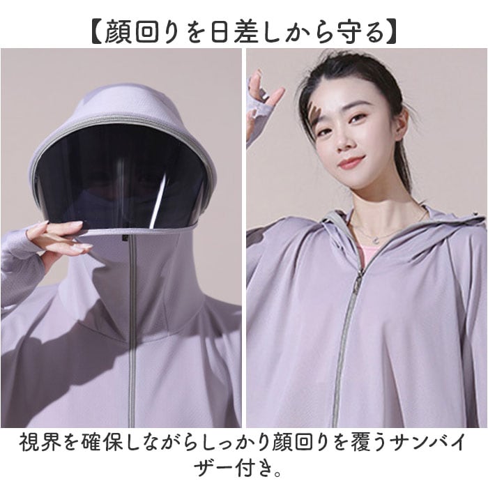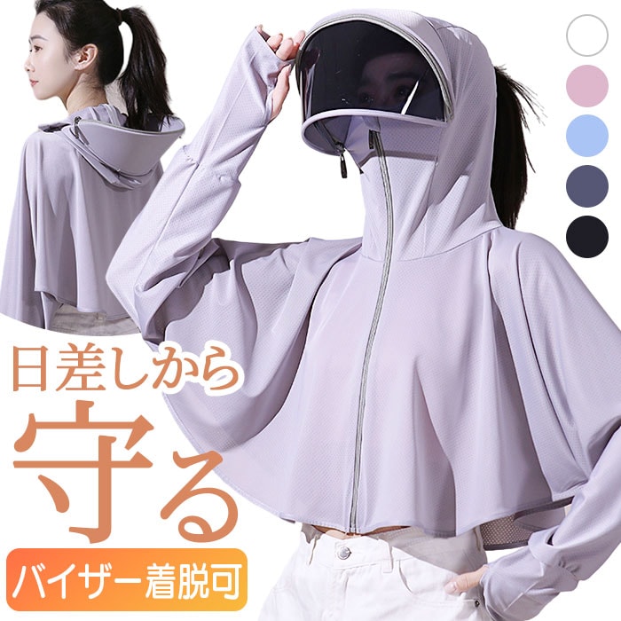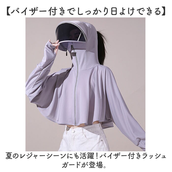 | 商品説明 | 【バイザー付きでしっかり日よけできる】夏のレジャーシーンにも活躍!バイザー付きラッシュガードが登場。【顔回りを日差しから守る】視界を確保しながらしっかり顔回りを覆うサンバイザー付き。【ロングスリーブでカバー】長袖仕様なので腕全体をしっかり日差しからカバー。手の甲までしっかり覆えるのもポイント。【メッシュ生地で通気性ヨシ】暑さがこもらない薄手のメッシュ生地。無数の穴で通気性がいいのが嬉しい。【汗をかいた後や洗濯後も速乾】通気性がいいので汗をかいた後や洗濯後もすぐ乾くのもGOOD。【目元まで覆うフード】しっかり目元まで覆いより日光に当たらない作りに。ポニーテールを崩さないホール付き。【ファスナーで着脱らくらく】ファスナーで開け閉めができるので、着脱がスムーズに。サッと羽織れる♪【めくりあがらない指通し】袖口部分には指通しがあり、作業時やスポーツ時も袖がめくりあがらない。【ボトムスを選ばないショート丈】着丈は選ばないショート丈スタイル。パンツはもちろん、スカートやワンピースにも合う。【サンバイザーは取り外し可能】サンバイザーはファスナーで簡単に取り外しが可能!【軽い着心地で動きやすい】軽く動きやすい着心地も魅力の一つ。普段使いはもちろん、スポーツやレジャーにも。 |
