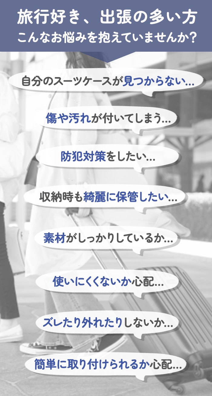 | 商品説明 | 保護&すぐに見つけられる便利さが魅力☆ポップなデザインが楽しい「スーツケースカバー」が登場。【スーツケースを保護して傷対策】ナイロンを使用のした耐摩耗性に優れた生地なので、スーツケースを傷から保護してくれる。【空港などでパッと見つけやすい◎】空港や駅などで、自分のスーツケースをパッと見つけやすくなるメリットも◎嬉しい発見率UP!【被せるだけの簡単装着でラクチン】グーンと伸びるので、上から被せてファスナーとベルトをカチッと留めるだけ!ズレにくく安心◎【ポップで可愛いデザインがたくさん】お出かけを楽しい気分にさせてくれるポップなデザインのラインナップ。お気に入りがきっと見つかる♪【サイズバリエーションが豊富】サイズを幅広くご用意。お持ちのスーツケースにぴったりのものが見つかる! |