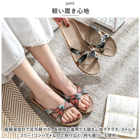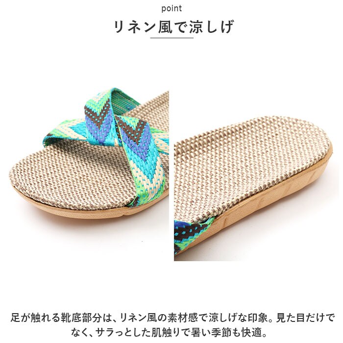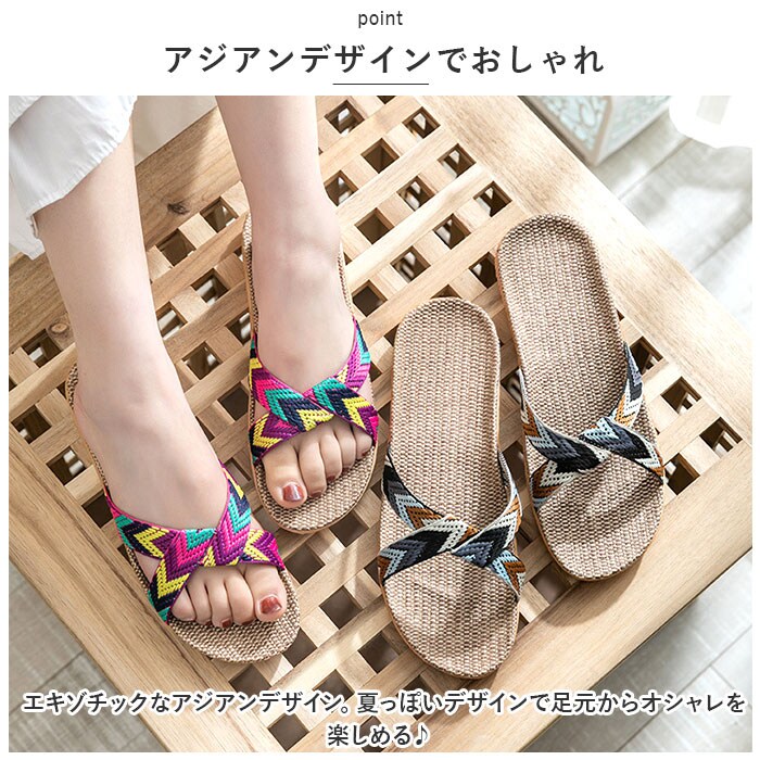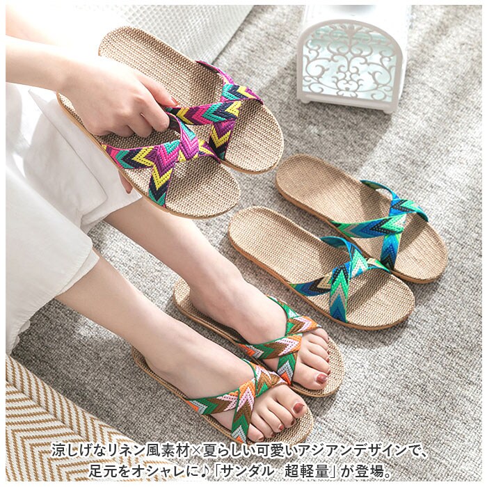 | 商品説明 | 涼しげなリネン風素材×夏らしい可愛いアジアンデザインで、足元をオシャレに♪「サンダル 超軽量」が登場。【サッと履ける】ペタンコのつっかけサンダルなので、足を通すだけでサッと履ける!履きやすさが魅力◎ちょっとそこまでの外出にもぴったり!【軽い履き心地】超軽量設計で足元軽やか。長時間の着用でも履き心地ラクラク、ストレスフリー!コンパクトなので旅行など、持ち運びにも便利。【アジアンデザインでおしゃれ】エキゾチックなアジアンデザイン。夏っぽいデザインで足元からオシャレを楽しめる♪【リネン風で涼しげ】足が触れる靴底部分は、リネン風の素材感で涼しげな印象。見た目だけでなく、サラっとした肌触りで暑い季節も快適。【使えるシーンいろいろ】室内でも屋外でも活躍。普段使いはもちろん、プールやビーチでも活躍!ルームシューズとして使うのもGOOD♪【選べるカラー】落ち着きのあるベーシックな配色から、パッと明るい色味まで、幅広いカラー展開!お気に入りがきっと見つかる♪ |