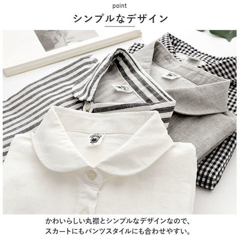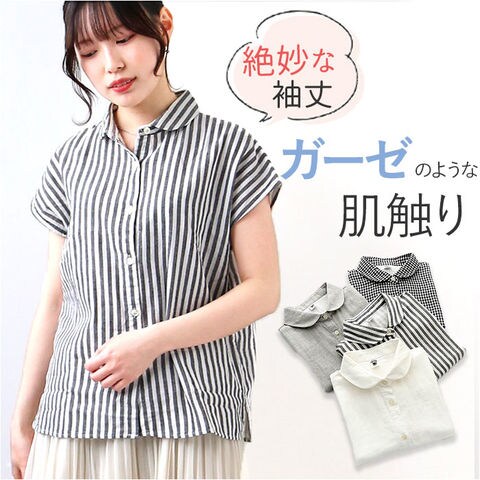 | 商品説明 | モノトーンカラーのシンプルな丸襟シャツが登場!【ガーゼのよううな肌ざわり】綿素材でガーゼのようなやわらかな肌触り。敏感肌の方でも安心。【シンプルなデザイン】かわいらしい丸襟とシンプルなデザインなので、スカートにもパンツスタイルにも合わせやすい。【フレンチスリーブ】さり気なく二の腕をカバーしてくれる絶妙な袖丈。女性らしいやわらかな雰囲気に。【ゆったりとしたシルエット】体型カバーできるゆったりとしたシルエットで、着心地バツグン! |