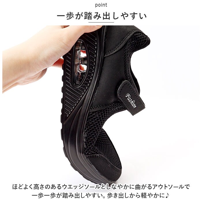 | 商品説明 | 歩きやすい工夫がたくさん!機能性スニーカーでラクに楽しくおでかけ♪「コンフォートシューズ」が登場!【窮屈感を感じない】日本人特有の幅広足にゆったりフィットする、伸びのよいアッパー部分。靴紐レスでラクチン、面ファスナーでフィット感を調節できる◎【一歩が踏み出しやすい】ほどよく高さのあるウエッジソールとしなやかに曲がるアウトソールで一歩一歩が踏み出しやすい。歩き出しから軽やかに♪【軽量】驚きの軽量設計。長時間の歩行も疲れにくく安心。機能性と軽量化を両立。【エアークッション】かかと部分にはエアークッションを搭載。歩行中のひざや腰への衝撃を吸収し和らげる。デザイン性もGOOD♪【通気性◎】アッパー部分は通気性バツグンのメッシュ仕様。靴内のムレを軽減し、快適な足元をキープ。【滑りにくい】しっかりと地面をグリップする靴底部分。雨の日や雪の日も安心して履ける仕様。【いろいろなシーンで】普段使いはもちろん、たくさん歩くお出かけの日や、スポーツシーンでも活躍◎ひとつあると重宝するアイテム。 |
