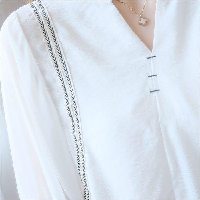 シャツ ブラウス レディース 7分袖 tシャツ 春 チュニック【ホワイト】