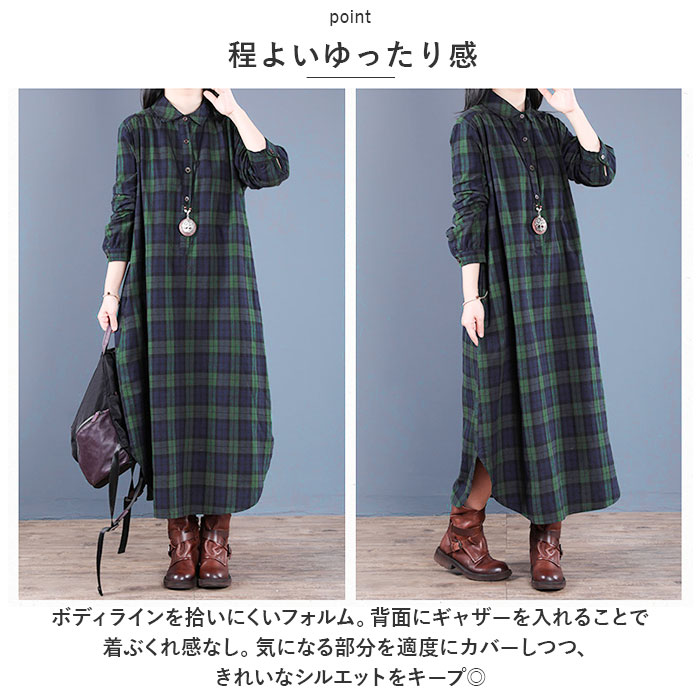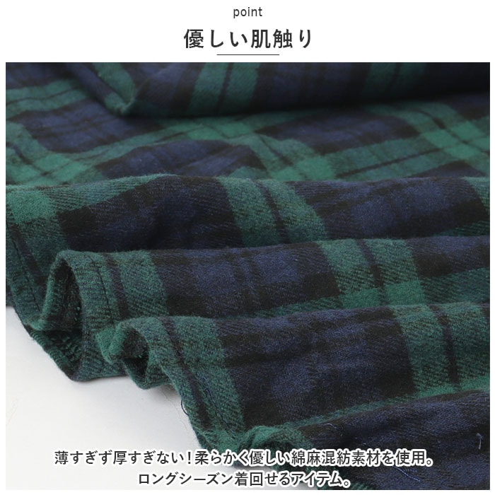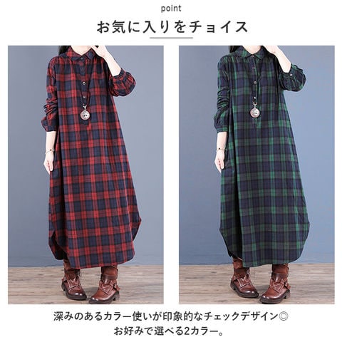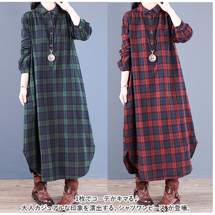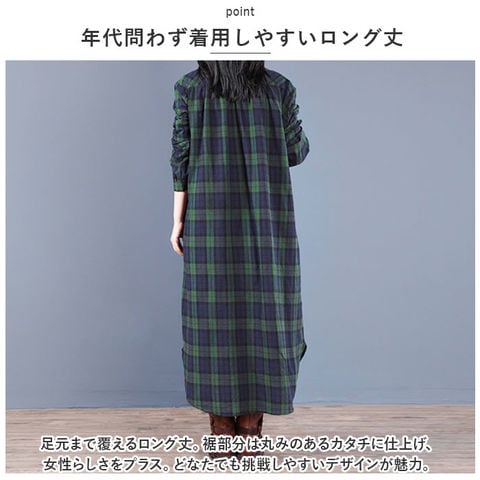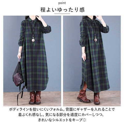 | 商品説明 | ・1枚でコーデがキマる♪大人カジュアルな印象を演出する、シャツワンピース が登場。【程よいゆったり感】ボディラインを拾いにくいフォルム。背面にギャザーを入れることで着ぶくれ感なし。気になる部分を適度にカバーしつつ、きれいなシルエットをキープ◎【ベーシックなフロントボタンタイプ】胸元あたりまでのフロントボタン付き。ボタンを全て閉めても、少し首元を開けてもOK。【年代問わず着用しやすいロング丈】足元まで覆えるロング丈。裾部分は丸みのあるカタチに仕上げ、女性らしさをプラス。どなたでも挑戦しやすいデザインが魅力。【優しい肌触り】薄すぎず厚すぎない!柔らかく優しい綿麻混紡素材を使用。ロングシーズン着回せるアイテム。【スタイルをアレンジ】袖ボタンを留めてロールアップOK。サラッと1枚で着こなすのはもちろん、寒い日はインナーを仕込んだり、ニットカーディガンやアウターを羽織ってコーディネート。【便利なポケット】左右に配置されたポケットには、スマホなどをIN。【お気に入りをチョイス】深みのあるカラー使いが印象的なチェックデザイン◎お好みで選べる2カラー。 |