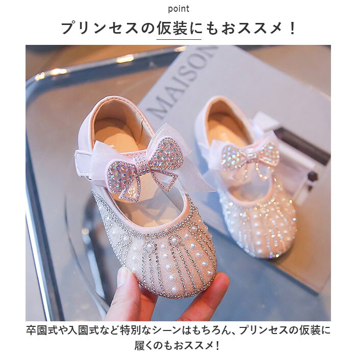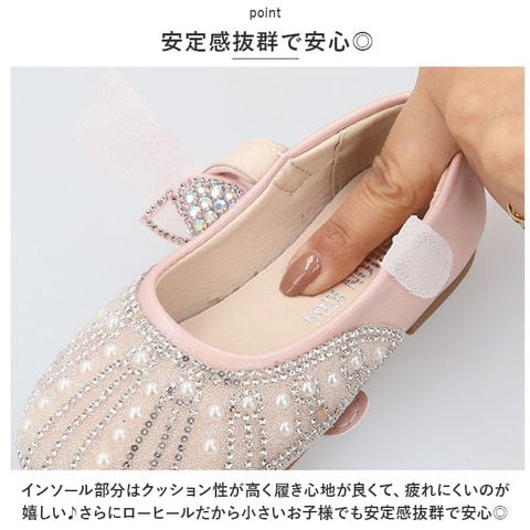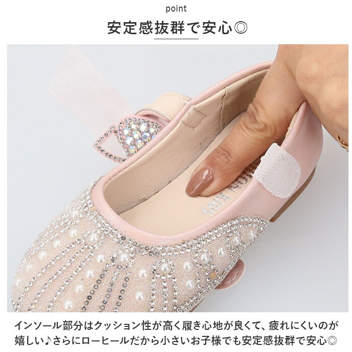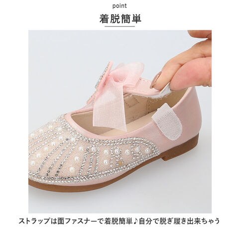 | 商品説明 | 発表会にピッタリ☆華やかなキッズフォーマルシューズが登場。【上品で華やかなシューズ】大粒のストーンとラインストーンのビジューが輝く、上品で華やかなシューズ。ストラップのリボンのモチーフがアクセント。【着脱簡単】ストラップは面ファスナーで着脱簡単♪自分で脱ぎ履き出来ちゃう!【安定感抜群で安心◎】インソール部分はクッション性が高く履き心地が良くて、疲れにくいのが嬉しい♪さらにローヒールだから小さいお子様でも安定感抜群で安心◎【滑りにくく安心】アウトソールには凹凸があり、タイル貼りの床や濡れた路面でも滑りにくく安心。【プリンセスの仮装にもおススメ!】卒園式や入園式など特別なシーンはもちろん、プリンセスの仮装に履くのもおススメ! |