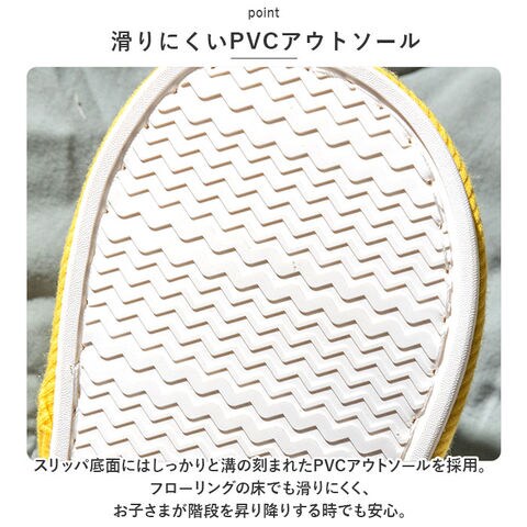| 商品説明 | 毎日の「ただいま」を、可愛いマスコットたちがお出迎え♪キッズの足に優しい「フェイスモチーフ付きこどもスリッパ」。【ほっこりフェイスモチーフ】足元を眺めるだけでほっこり気持ちがほぐれる♪コミカルな表情のフェイスモチーフがデザインのワンポイント。【サラッと快適なファブリック】アッパー生地と足裏が触れるインソール部分には、肌触りがソフトで、ストライプ状の畝が特徴的な綿混紡のリブ生地を使用。【ふんわり快適インソール】クッションを内蔵したふんわりインソールが足裏の重みを優しく受け止めるので、長時間履いても疲れにくく快適な履き心地。【滑りにくいPVCアウトソール】スリッパ底面にはしっかりと溝の刻まれたPVCアウトソールを採用。フローリングの床でも滑りにくく、お子さまが階段を昇り降りする時でも安心。【パタパタ音がしない静音設計】屈曲性のあるアウトソールは、歩行時の衝撃を優しく吸収。パタパタ音もしにくい静音設計なので、活発なキッズに最適。【大好きなマスコットをチョイス】おとぼけ顔のダイナソーは元気なボーイズに、リボンを付けた女の子はガールズにオススメ!表情豊かなアニマルたちはユニセックスに着用できるのが嬉しいポイント。 |