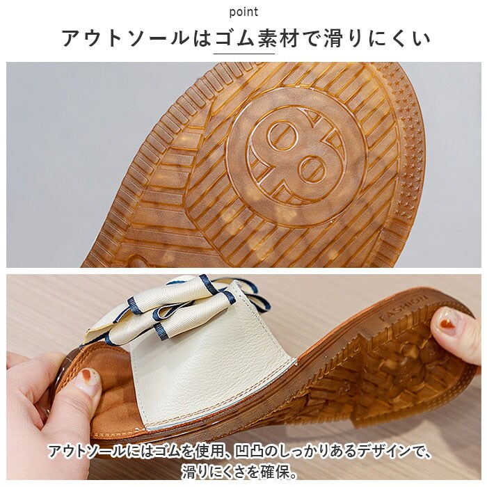 | 商品説明 | 大きなリボンが特徴的なレディースサンダルが新発売!【大きなフロントリボン】フロントのバイカラーリボンがアピールポイント♪エレガントさで足元を華やかに演出♪【つっかけて履く】つっかけて履く簡単さが魅力の一つ。足をすっと通せてちょっとそこまでのワンマイルのお出かけやベランダ履きにもおススメ!【フラットなつくり】フラットデザインで、長時間の使用でも足元が疲れにくい。【クッション入りインソール】快適さを追求したインソールにはクッションを採用。歩きやすさを重視し、足元から心地よさを感じる設計。【アウトソールはゴム素材で滑りにくい】アウトソールにはゴムを使用、凹凸のしっかりあるデザインで、滑りにくさを確保。【スリッパにも】家の中でのスリッパとしても活躍するサンダル。どんなシーンでも自由に使え、日々の生活を豊かに彩るアイテム。 |