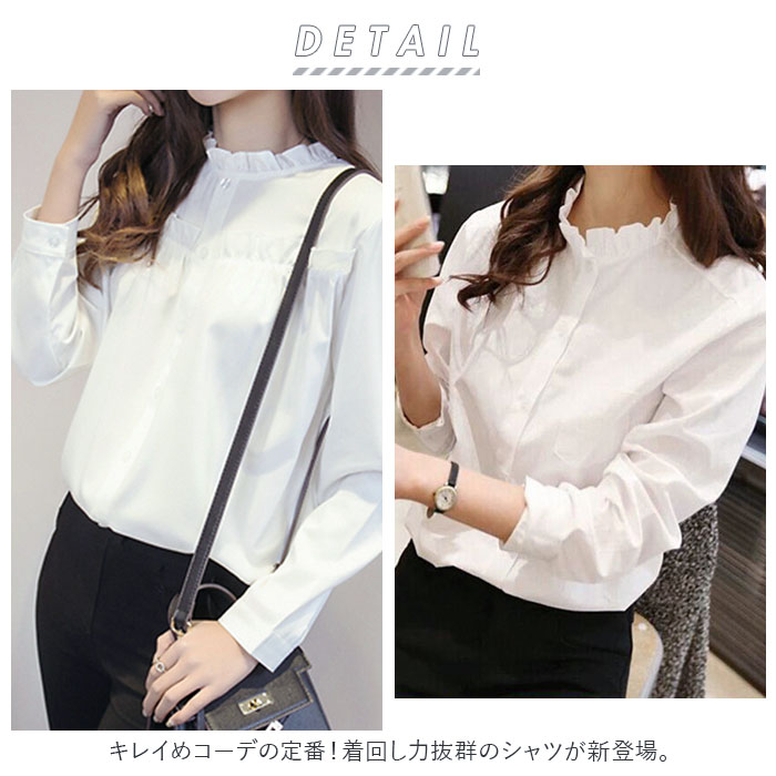 | 商品説明 | キレイめコーデの定番!着回し力抜群のシャツが新登場。サラッとして手触りで、着心地抜群。シンプルなホワイトカラーなので、どんなボトムスとも相性ばっちり◎お手持ちのカーディガンやニットなどと合わせれば、ロングシーズン活躍!襟付きデザインやスタンドカラーデザインをラインナップ。通勤コーデにもおすすめ。(※タイプによりデザインが異なります。) |