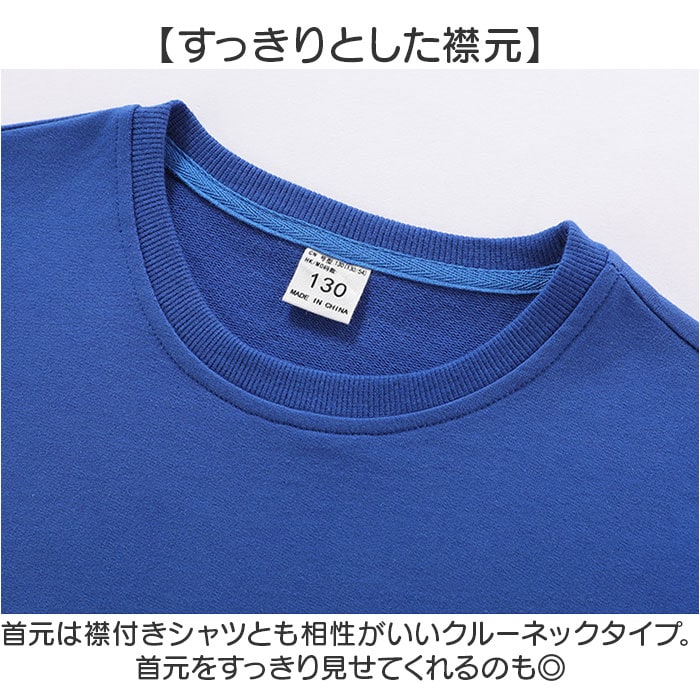 | 商品説明 | 【定番スタイルがうれしい】様々なコーデに合う定番スタイル♪キッズ用トレーナーが発売。【すっきりとした襟元】首元は襟付きシャツとも相性がいいクルーネックタイプ。首元をすっきり見せてくれるのも◎【肌に優しいコットン生地】優しい肌当たりのコットン生地を採用し、繊細なお子さまの肌に直接触れても安心♪【コーデを選ばない】装飾がないシンプルな作りなのでボトムスやインナーのシャツを選ばず着回し力抜群!【着ぶくれ知らずで窮屈感ナシ】程よい生地感なので、コートやジャケットなどのアウターと合わせても着ぶくれせず動きやすい【ストレスフリーな着心地】軽い着心地とストレッチ性があるので、ストレスフリー!部屋着やパジャマ代わりにもオススメ【体育の授業や通学用に】フードやファスナーの制限がある学校用や体育の授業用にも最適。 |
