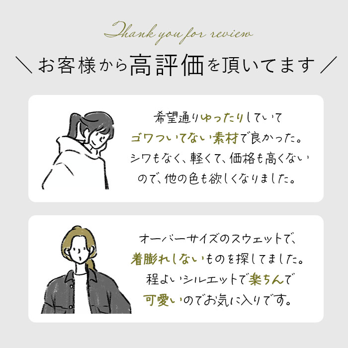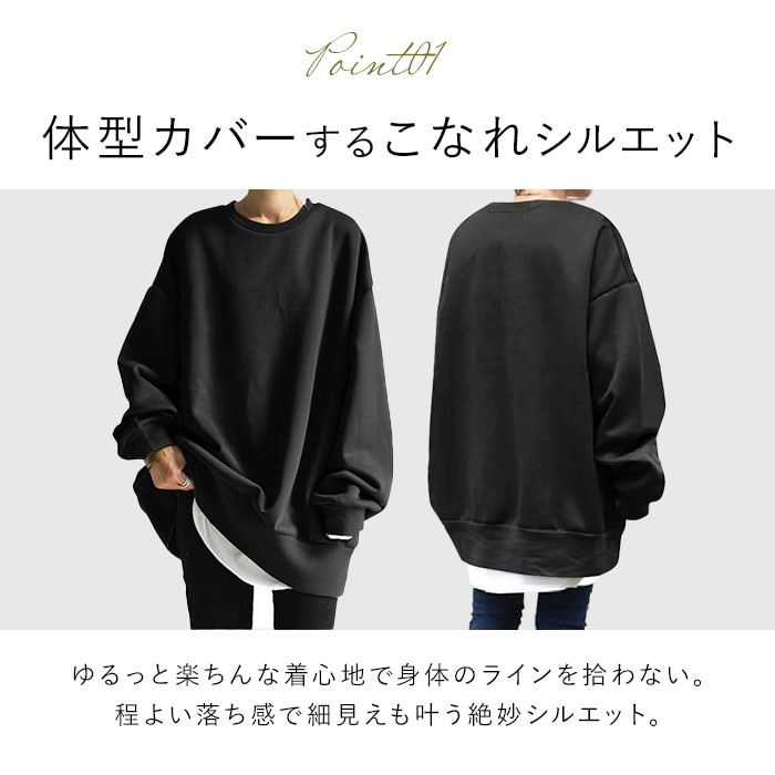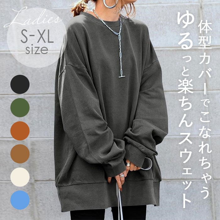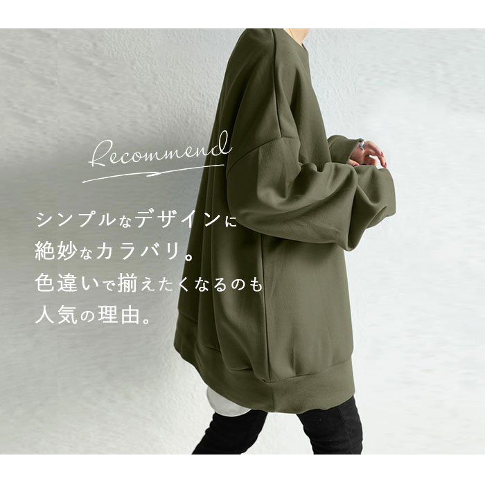 | 商品説明 | ダボっとオーバーサイズがたまらない☆こなれ感のあるラフな着こなしが完成する!トレーナーが登場。【オーバーサイズ】ダボっとオーバーサイズ感がたまらない☆シンプルだけどちゃんと今っぽい、こなれ感のあるラフな着こなしがキマる!トレンドアイテム。【細見えトレーナー】身体のラインを拾わない広めの身幅◎ゆるっと生地の落ち感で、細見えを叶えてくれるトレーナー。長めの丈感で気になる腰周りもしっかりカバー。【幅広いコーデに】細めのパンツや、ワイドパンツに合わせてカジュアルに。タイトスタート、ロングスカートに合わせて大人カジュアルに。幅広いアイテムとの相性がGOOD♪【ロングシーズンOK】コットンを使用した、薄めの作りなので春秋冬とロングシーズン着用できる。寒い季節はニットやインナーを重ねても着ぶくれしにくい◎【着心地◎】サラっとした肌触りと柔らかいコットンの素材感で、着心地のよさが魅力。毎日着たくなる、快適な着心地♪【選べるカラー】ベーシックカラーから差し色カラーまでご用意。豊富なカラーバリエーション☆色違いでゲットするのもオススメ。 |