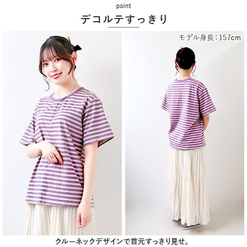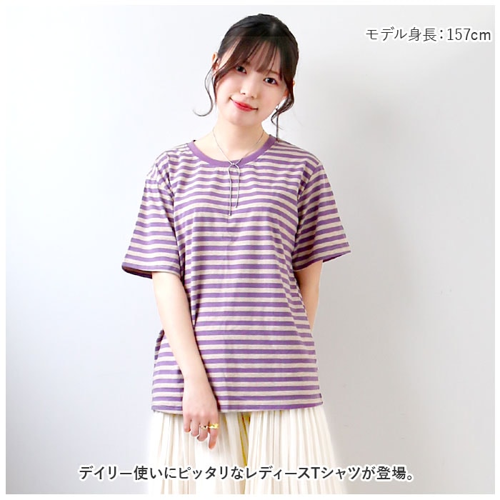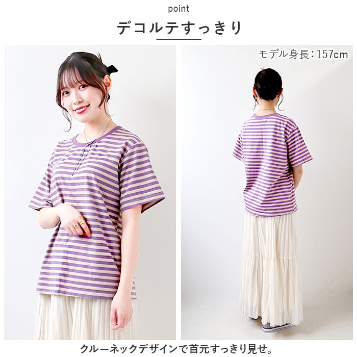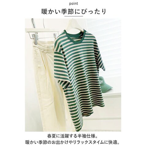 | 商品説明 | デイリー使いにピッタリなレディースTシャツが登場。【太めのボーダー】太めのボーダー柄。カジュアルな雰囲気漂うデザインで普段着やお出かけにぴったり!【デコルテすっきり】クルーネックデザインで首元すっきり見せ。【暖かい季節にぴったり】春夏に活躍する半袖仕様。暖かい季節のお出かけやリラックスタイムに快適。【肌触りの良い素材】コットンとスパンデックス混合生地を使用し、肌触りもよく伸縮性抜群。長時間の着用でも快適に◎【ゆったりめなシルエット】リラックス感溢れるゆったりめなシルエット♪部屋着としてもおススメ! |