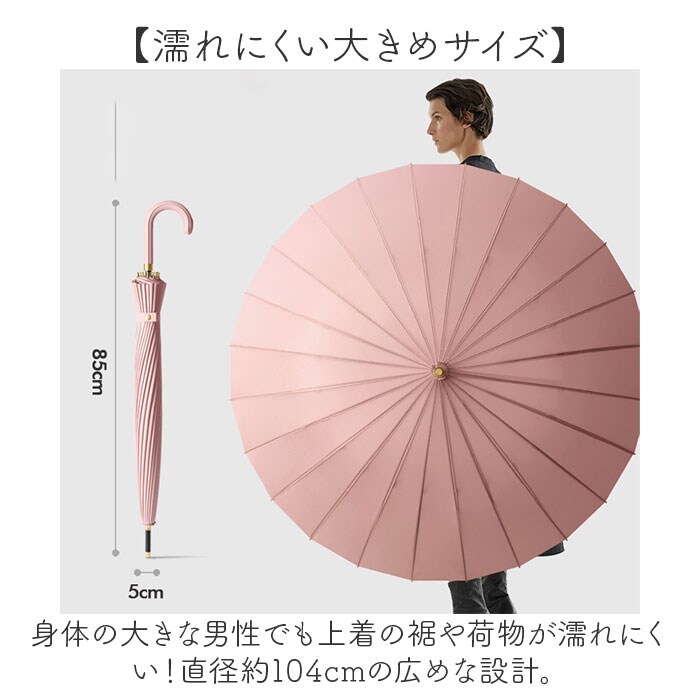 | サイズ | [親骨の長さ]約58cm/[直径]約104cm/[全長]約85cm ※サイズは当店計測の実寸サイズです。実際の商品ならびにメーカー表記サイズとは多少の誤差が生じる場合がございます。あらかじめご了承ください。 |