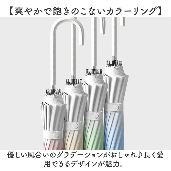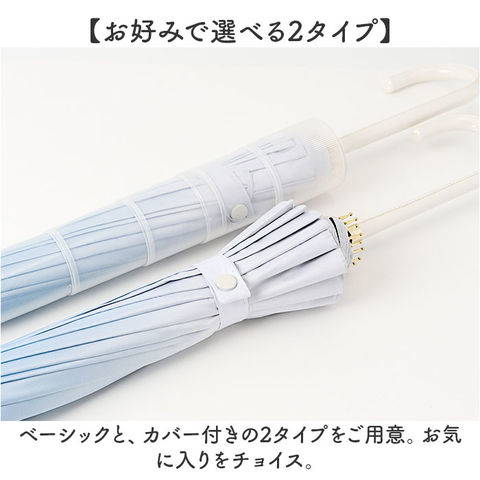 | 商品説明 | 【お出かけの頼れる相棒に♪】晴れの日も雨の日も使える兼用タイプ。「レディース用16本骨長傘」が新登場。【体も荷物も雨からしっかりガード】撥水力があり、親骨は大きめの60cmサイズ。雨から守ってくれる、心強い味方。【強い風にも負けない16本骨仕様】耐風性にも優れた16本骨傘。折れにくく丈夫なので、お天気が荒れ気味の日にも。【気になる紫外線もカット】内側ブラックコーティング加工&UPF50+。日焼けや熱中症対策にも最適。【ワンタッチで簡単オープン】片手でサッと開きやすいジャンプ式。片手に荷物がある時もラクラク。【サクッと留められるボタン式バンド】傘生地を留めるバンドは、バチンっと留めやすいスナップボタンタイプ。【お好みで選べる2タイプ】ベーシックと、カバー付きの2タイプをご用意。お気に入りをチョイス。【水滴が落ちないスライド式カバー】サッと上げるだけで傘生地をカバー。水が溜まったらサックを開けて乾燥OK。【爽やかで飽きのこないカラーリング】優しい風合いのグラデーションがおしゃれ♪長く愛用できるデザインが魅力。 |