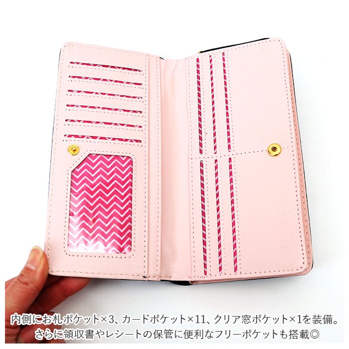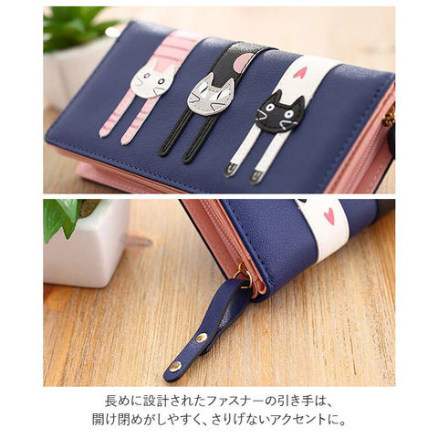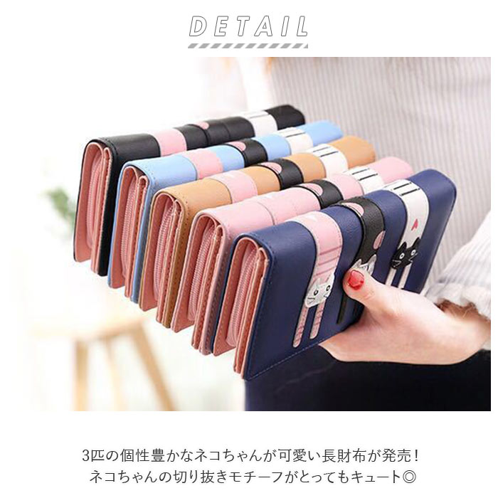 | 商品説明 | ・3匹の個性豊かなネコちゃんが可愛い長財布が発売!ネコちゃんの切り抜きモチーフがとってもキュート◎滑らかな手触りのPUレザー素材を採用。開口部はスナップボタンでラクラク開閉!内側にお札ポケット×3、カードポケット×11、クリア窓ポケット×1を装備。さらに領収書やレシートの保管に便利なフリーポケットも搭載◎外側に配置された小銭入れは、折りマチ付きの2ルーム仕様。側面まで大きく開くラウンドファスナー式で、小銭の出し入れがラクチン。長めに設計されたファスナーの引き手は、開け閉めがしやすく、さりげないアクセントに。 |