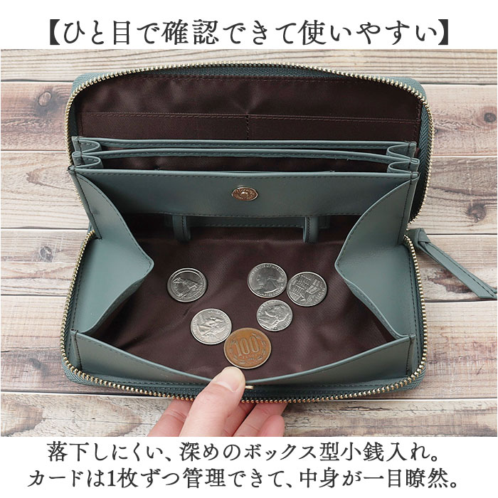 | 商品説明 | 【収納力も機能性も抜群の相棒】しっかり収納できてお会計時のプチストレスも解消!LIZDAYS フェイクレザー 長財布。【じゃばら仕様で180度オープン】ラウンド型にガバっと開いて、出し入れがとってもスムーズ!ファスナーで飛び出しもガード。【現金もカードもたっぷり大容量設計】フリーポケット、マグネット式の小銭入れ・多くのカードポケット。現金派も安心の長財布。【お会計がスマート◎コインスルー式】おつりとレシートをまとめて入れても、自動で仕分け!レジ前で慌てないつくり。【ひと目で確認できて使いやすい】落下しにくい、深めのボックス型小銭入れ。カードは1枚ずつ管理できて、中身が一目瞭然。【お札や通帳もひとまとめ】フリーポケットには、お札を折らずにそのまま。通帳も入って、銀行へ行く際にも便利。【ICカード対応の背面ポケット】背面にもポケットを1つ配置。ICカードなど、使用頻度の高いカードをIN。【スキミング防止機能を搭載】外側全体に施したスキミング防止フィルムが、電磁波を遮断!カード情報や個人情報を保護。【柔らかなシボ感のある合皮素材】上品なシボが、手にしっかり馴染む◎本革のようなお手入れ不要で、気軽に使えるのが嬉しい♪【内生地にもこだわりをプラス】内生地は上質なマイクロファイバーレザー。カードやお札を出しやすいサラッとした質感。【お気に入りを選べるカラー】ベーシックや温かみのあるカラーをラインナップ。どの色もゴールド金具が素敵にマッチ♪【ポケット仕様】内側:フリーポケット×4、マグネット式小銭入れ×1、カードポケット×16背面:フリーポケット×1 |