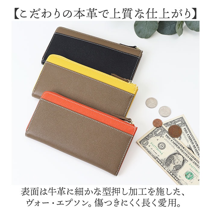 | 商品説明 | 【スマートに持ち運べて使い勝手抜群】持ち歩きに便利な長財布♪「Digne レザースリムロングウォレット byLIZDAYS」【こだわりの本革で上質な仕上がり】表面は牛革に細かな型押し加工を施した、ヴォー・エプソン。傷つきにくく長く愛用。【長財布ながら薄くて軽いを実現】かさばることなく、バッグの中にすっぽり。コンビニなどへ行く際も、サッと持ち出せる!【ガバっと大きくL字型にオープン】開閉ラクラクL字ファスナー式。中身を確認しやすく、閉じればこぼれ落ちをガード。【ワンアクションでお会計がスムーズ】内側にはファスナーがなく、開口部を開くだけ。急いでいる時も、動作に手間取らない!【お札をそのままキレイに収納】お札は折らずにINできて、取り出しやすい片マチ付き。レシートやクーポンもすっきり。【仕分けできる2ポケット小銭入れ】仕切りの役割も果たすオープン式小銭入れ。内側は2つに分かれており、鍵などを入れてもOK。【増えがちなカードも複数枚収納】複数のカードポケットを配置。カード類を見分けやすく、サッと出し入れできるのが嬉しい!【通帳も一緒に持ち歩けて便利】通帳が入る大きさのフリースペースが2つ。お金と一緒なら、バッグの中で探す手間が不要。【便利な背面ポケット】ライブや新幹線などのチケットなど折らずに安心して保管。【軽やかな使い心地のヒミツ】内側にポリエステル素材を使うことで軽量化を実現。レザーパイピングで強度と高級感をプラス。【スキミング防止機能を搭載】外側全体に施したスキミング防止フィルムが、電磁波を遮断!カード情報や個人情報を保護◎【お気に入りを選べるカラー】ベーシックや差し色を使った、ワンカラー&バイカラー。ギフトにもおすすめ!【Digne byLIZDAYS】凛とした上品さ♪時代に合わせたコンパクトさに重きを置いたデザインを展開。【ポケット仕様】内側:お札入れ×1、小銭入れ×2、カードポケット×7、フリーポケット×1背面:フリーポケット×1 |
