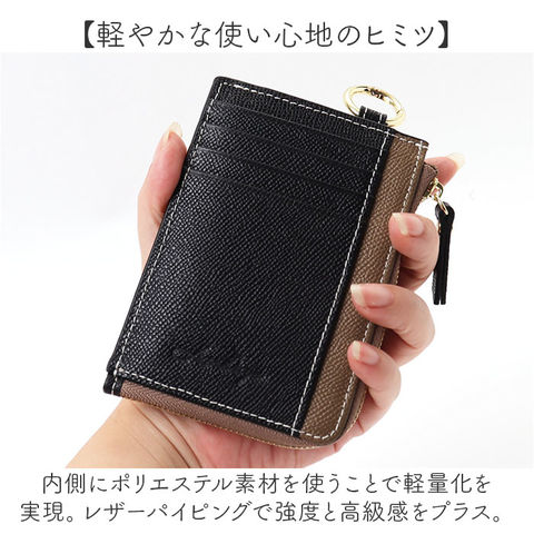 | 商品説明 | 【大事な貴重品をすっきりひとまとめ】ミニマルなのに機能的◎「Digne レザーミニフラグメントケース byLIZDAYS」【こだわりの本革で上質な仕上がり】表面は牛革に細かな型押し加工を施した、ヴォー・エプソン。傷つきにくく長く愛用。【スリムでコンパクトな相棒】軽量でかさばりにくく、ミニバッグにもすっぽり。買い物も電車の乗車もこれ1つでスマート☆【ガバっと大きくL字型にオープン】サッと開閉できるL字ファスナー式。中身を確認しやすく、閉じればこぼれ落ちをガード。【ワンアクションでお会計がスムーズ】内側にはファスナーがなく、開口部を開くだけ。急いでいる時も、動作に手間取らない!【すっきり整頓できるシンプル設計】カードポケットと、仕切りの役割も果たすオープン式小銭入れ。フリースペースには折り札を。(※)小銭入れは片マチ付きです。【シーンに合わせてマルチに活躍】お札に折り目を付けず収納することも可能。鍵などを一緒に入れてもOK。【増えがちなカードも複数枚収納】前面にも複数のポケットを配置。カード類を見分けやすく、サッと出し入れできるのが嬉しい!【IC対応の便利な背面ポケット】交通系カードを使った改札の通過や、タッチ決済も一瞬で完了◎【軽やかな使い心地のヒミツ】内側にポリエステル素材を使うことで軽量化を実現。レザーパイピングで強度と高級感をプラス。【スキミング防止機能を搭載】外側全体に施したスキミング防止フィルムが、電磁波を遮断!カード情報や個人情報を保護◎【取り付け簡単!カラビナリング】バッグのDカンやスマホショルダーなどに、ラクラク装着。いつでも手の取りやすい位置に♪【お気に入りを選べるカラー】ベーシックや差し色を使った、ワンカラー&バイカラー。ギフトにもおすすめ!【Digne byLIZDAYS】凛とした上品さ♪時代に合わせたコンパクトさに重きを置いたデザインを展開。【ポケット仕様】内側:カードポケット×2、小銭入れ×1前面:カードポケット×5背面:カードポケット×1 |