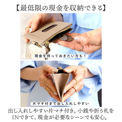 | 商品説明 | 【貴重品をまとめてすっきり収納】いつも持ち歩く貴重品を1つに♪「LIZDAYS 本革マルチミニポーチ」。【使うほどに味わいの増す本革製】シボ感のある上質な牛革素材。しっとり滑らかな手触りで、使い込むほどに風合いがアップ。【持ち歩きやすいコンパクト設計】スリムで軽量!ミニバッグ等にもすっぽり収まり、そこまでのお出かけにはスマホとこれだけ♪【開閉スムーズ、安心のファスナー式】サッと開いて取り出しやすく、ファスナーを閉じれば中身の飛び出しをガード。【最低限の現金を収納できる】出し入れしやすい片マチ付き。小銭や折り札をINできて、現金が必要なシーンでも安心。【使用頻度の高いカードを収納】前面には3つのカードポケット。よく使うカードを、1枚ずつ取り出しやすい◎【スッと取り出せる窓付きポケット】背面のポケットは、ICカードや社員証を。窓から指でスーッと押して、取り出し簡単。【便利なカラビナリングも装備】簡単に取り付けできるカラビナリング。スマホショルダー等、他のアイテムと一緒に持ち運びも。【長く愛用できるシンプルなデザイン】年代問わず持ちやすい、落ち着きのある仕上がり。贈り物にもおすすめ☆【ポケット仕様】前面:カードポケット×3背面:窓付きカードポケット×1 |