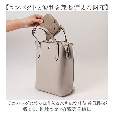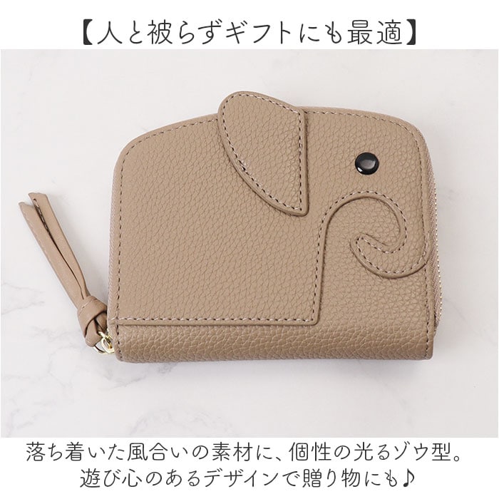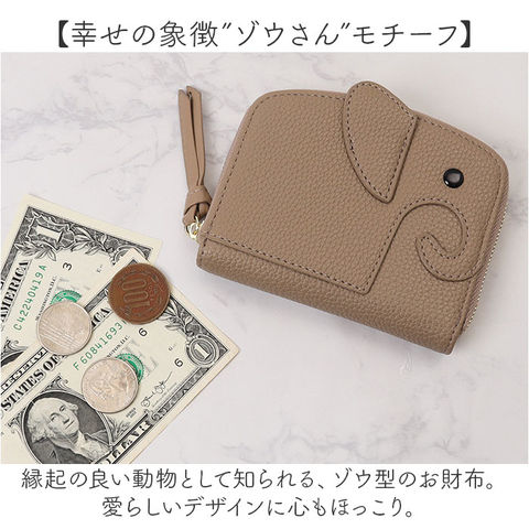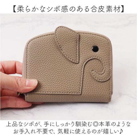 | 商品説明 | 【スマートに持ち運べて使い勝手抜群】デイリーに使いやすく、見た目も可愛い♪LIZDAYSの「ゾウ型ミニ財布」。【幸せの象徴”ゾウさん”モチーフ】縁起の良い動物として知られる、ゾウ型のお財布。愛らしいデザインに心もほっこり。【コンパクトと便利を兼ね備えた財布】ミニバッグにすっぽり入るスリム設計&最低限が収まる、無駄のない8箇所収納◎【ぐるっと開くラウンドファスナー】開口部はラウンド型にオープン。中身をひと目で確認しやすく、お会計時も手間取らない♪【折り札も噛まずにスマート】・2つ折りにしたお札も収納可能。ファスナーが噛まずに、開閉できるつくり。【仕分けしやすく自由に使える3層】・3つに分かれたじゃばら式ポケット。中央には小銭、左右には複数のカードや鍵を収納。【現金派もキャッシュレス派も満足】・3層構造に加え4つのポケット付き。見た目以上に収納力があり、全てワンアクションでOK。【ICカード対応の背面ポケット】背面にもポケットを1つ配置。ICカードなど、使用頻度の高いカードをIN。【スキミング防止機能を搭載】外側全体に施したスキミング防止フィルムが、電磁波を遮断!カード情報や個人情報を保護。【柔らかなシボ感のある合皮素材】上品なシボが、手にしっかり馴染む◎本革のようなお手入れ不要で、気軽に使えるのが嬉しい♪【人と被らずギフトにも最適】落ち着いた風合いの素材に、個性の光るゾウ型。遊び心のあるデザインで贈り物にも♪【ポケット仕様】内側:フリーポケット(左右)×2、小銭入れ(中央)×1、カードポケット×4背面:カードポケット×1 |