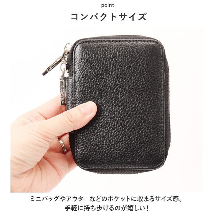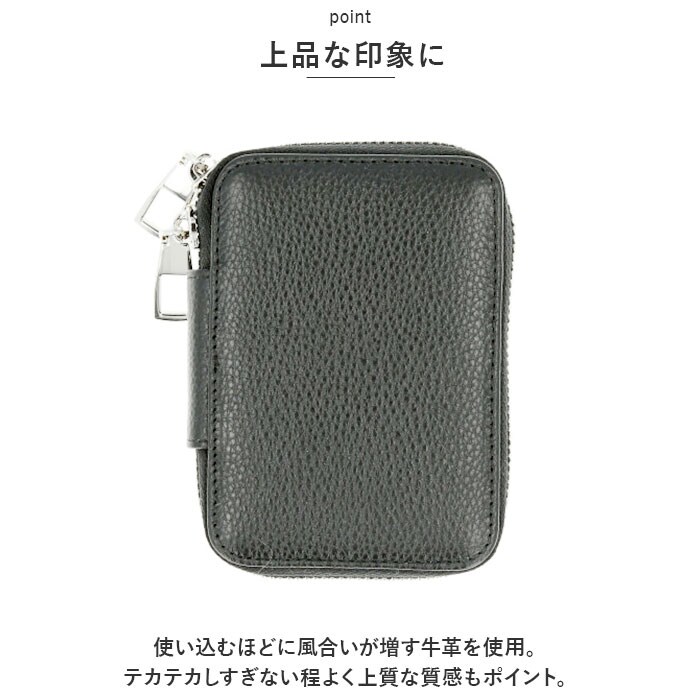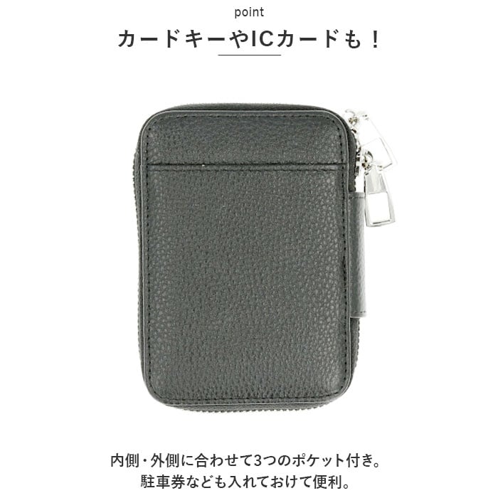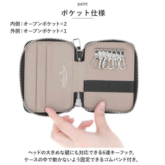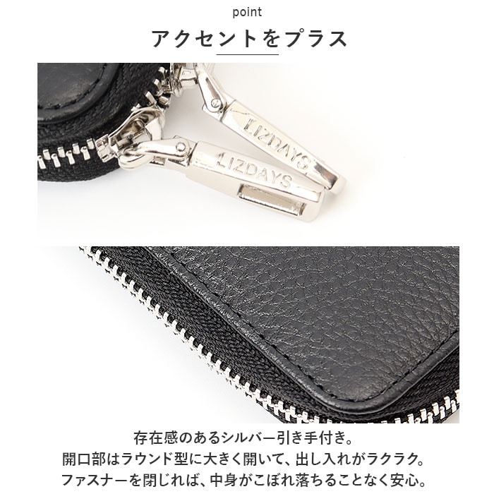 | 商品説明 | LIZ DAYSから、シンプルで使いやすいスマートキーケースが新登場。【コンパクトサイズ】ミニバッグやアウターなどのポケットに収まるサイズ感。手軽に持ち歩けるのが嬉しい!【ダブルファスナー開口】開口部はラウンド型に大きく開いて、出し入れがラクラク。ファスナーを閉じれば、中身がこぼれ落ちることなく安心。【鍵や車のスマートキー収納】ヘッドの大きめな鍵にも対応できる6連キーフック。ケースの中で動かないよう固定できるゴムバンド付き。(※6連キーフックは1つだけ大きさが異なります。)【カードキーやICカードも!】内側・外側に合わせて3つのポケット付き。駐車券なども入れておけて便利。【上品な印象に】使い込むほどに風合いが増す牛革を使用。テカテカしすぎない程よく上質な質感もポイント。【ユニセックス仕様】無駄のないシンプルなデザイン。ご家族でシェアしたり、ペア使いもおすすめ♪【アクセントをプラス】存在感のあるシルバー引き手付き。【ポケット仕様】内側:オープンポケット×2外側:オープンポケット×1 |