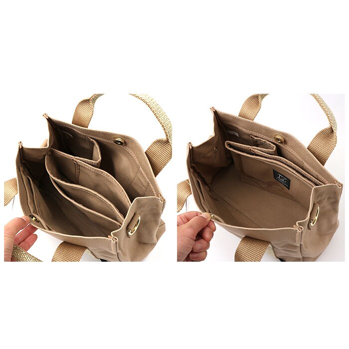 LIZDAYS 動かせる仕切り付きキャンバスバッグ Sサイズ【グレーベージュ/ブラック】