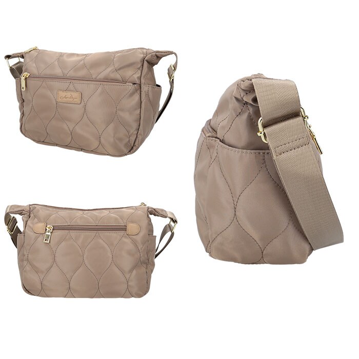 LIZDAYS キルティングナイロンショルダーバッグ【グレーベージュ】