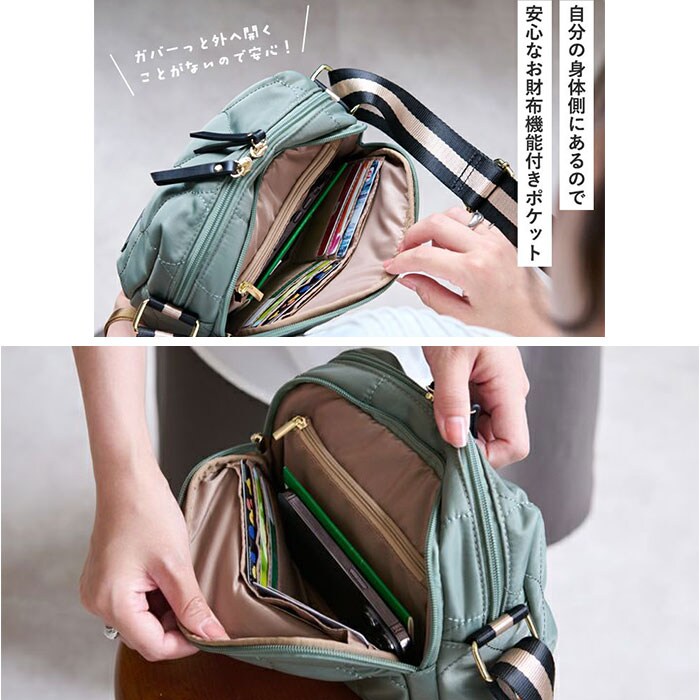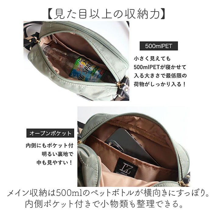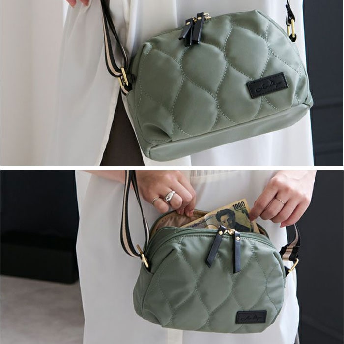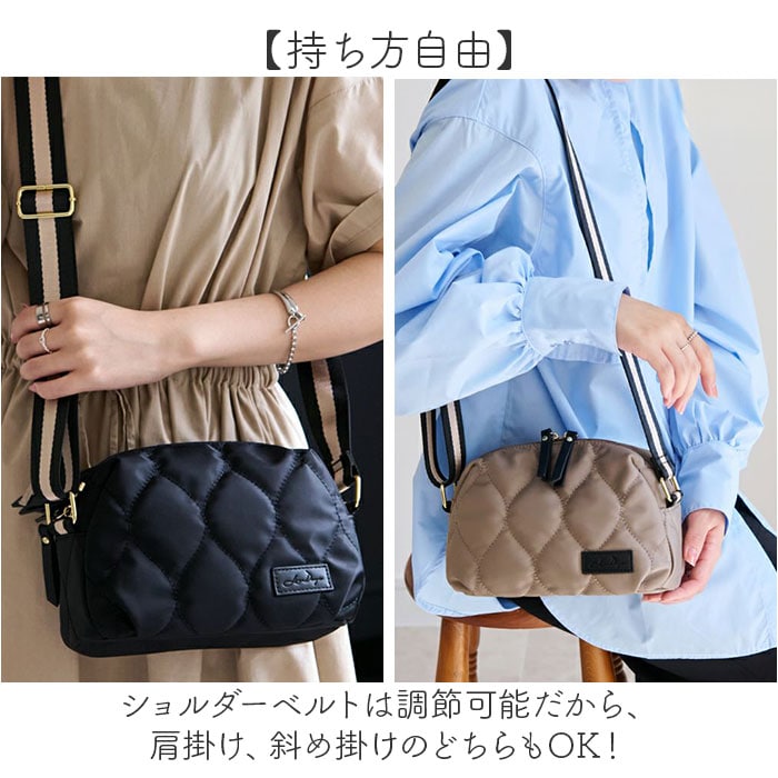 | 商品説明 | 【身軽にお出かけ】お財布とバッグが一体型になった「LIZDAYS QUILTED NYLON WALLET BAG」が新登場。【分かれた収納スペース】メイン収納+お財布ポケットで荷物の仕分けがしやすい便利なつくり♪【お財布機能付き】カード、お札、小銭をまとめて収納できるポケットがお財布代わりに!【見た目以上の収納力】メイン収納は500mlのペットボトルが横向きにすっぽり。内側ポケット付きで小物類も整理できる。【雨の日も安心】表地には撥水加工を施した耐久性のある高密度ナイロン素材を採用。※完全防水ではありません。【持ち方自由】ショルダーベルトは調節可能だから、肩掛け、斜め掛けのどちらもOK!【気兼ねなく使える】軽量でコンパクトなサイズ感がポイント!ママバッグや旅行のサブバッグにもちょうどいい。 |