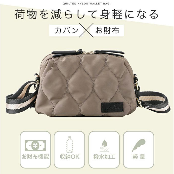 LIZDAYS QUILTED NYLON WALLET BAG【グレーベージュ/ブラック】